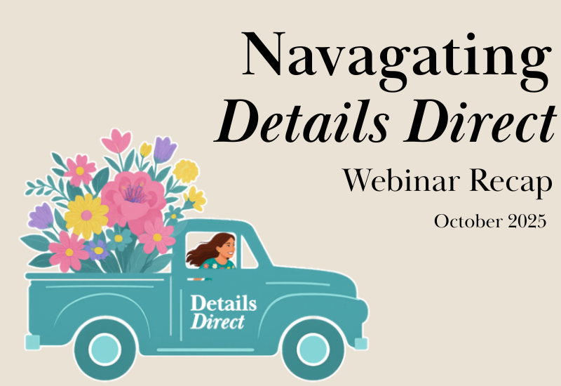 The Details Support team recently hosted an exciting webinar to introduce Details Direct, our newest platform that simplifies floral purchasing into your Details experience. The session guided attendees through the story behind Details Direct, a live demo of how it works, and a look at what’s coming next. If you could not join us live, here is a full recap!