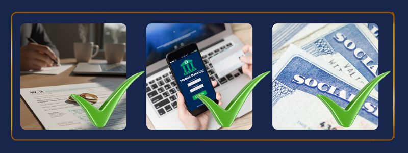 If filing jointly: your spouse’s full name, Social Security number/Tax ID, and date of birth