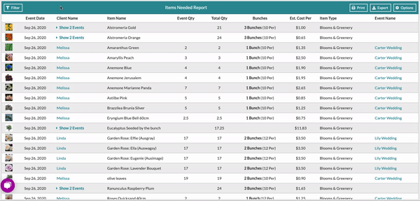 Did you know Details includes a page that allows you to combine orders together for multiple events? Well, now you do! It's called the 'Items Needed' report and it's a big time-saver. You'll find it in the main menu under the 'Reports' section. At the moment, it's the only report there, so you can't miss it!