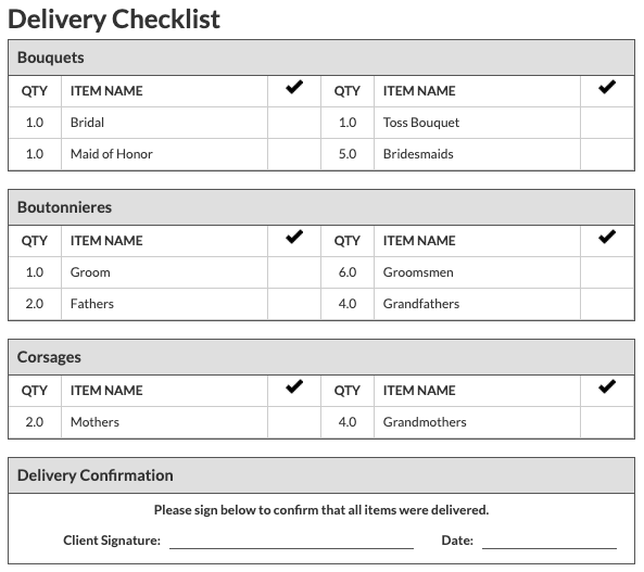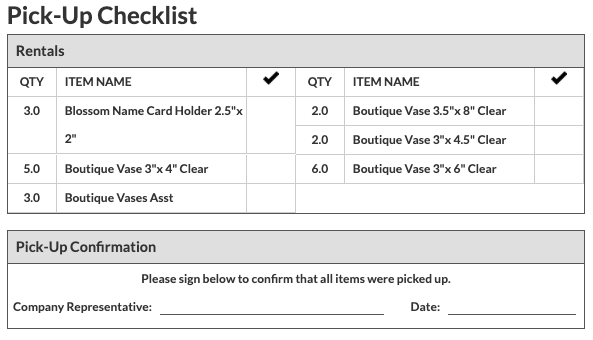 Within each of your events is a Document section where there are a few handy, printable docs meant just for you and your team. One of them is the Delivery PDF which includes contact information for your event, important times and locations, and an itemized list of all the deliverables for the event. Print or save this document to assist with your deliveries!